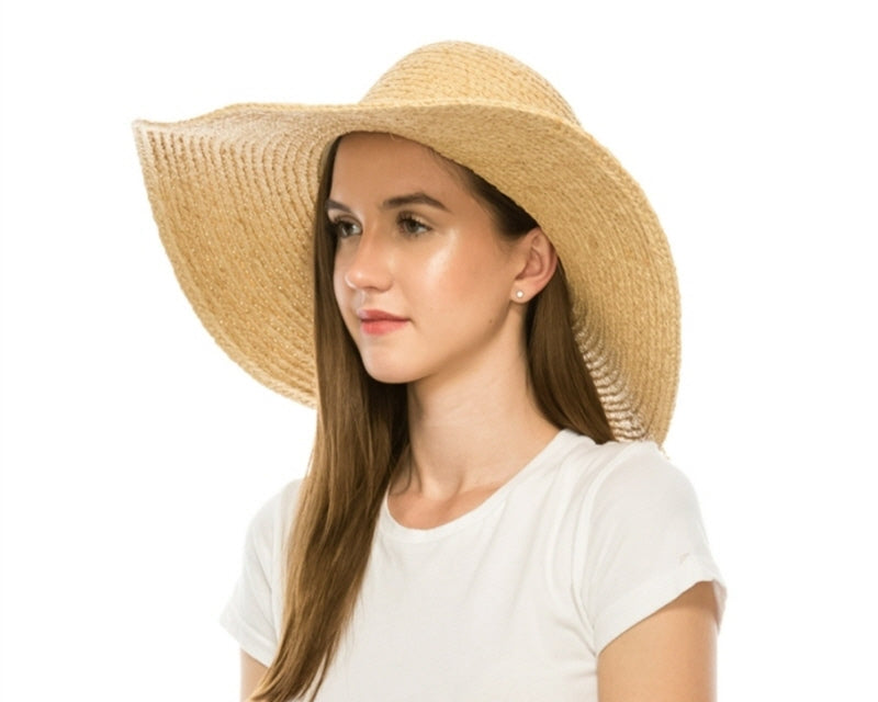 A393-RAFFIA BEACH HAT W/ SHELL TRIM