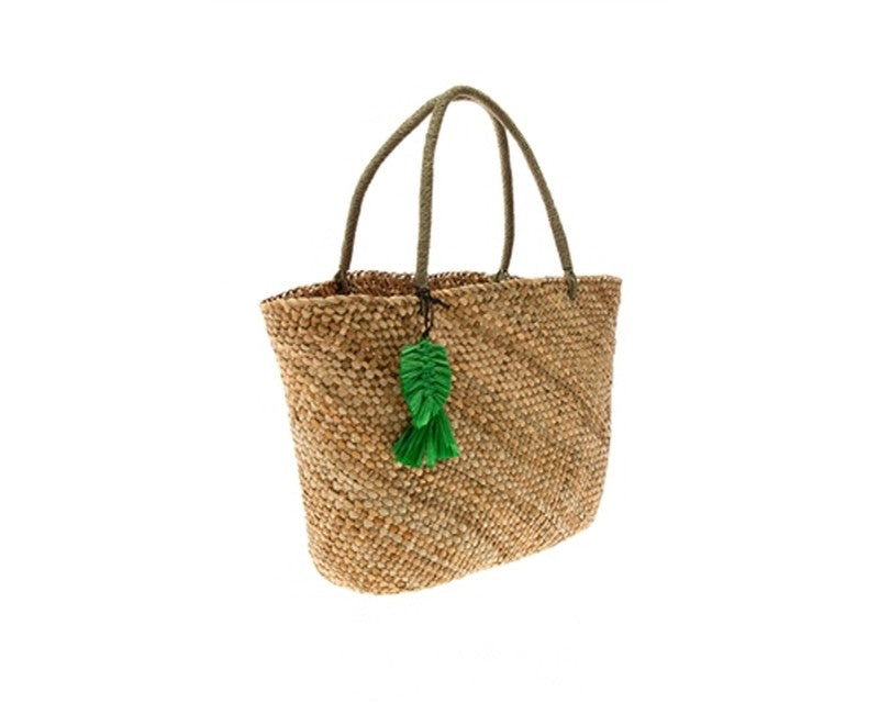 A872-HANDWOVEN SEAGRASS TOTE BAG WITH RAFFIA STRAW TASSELS