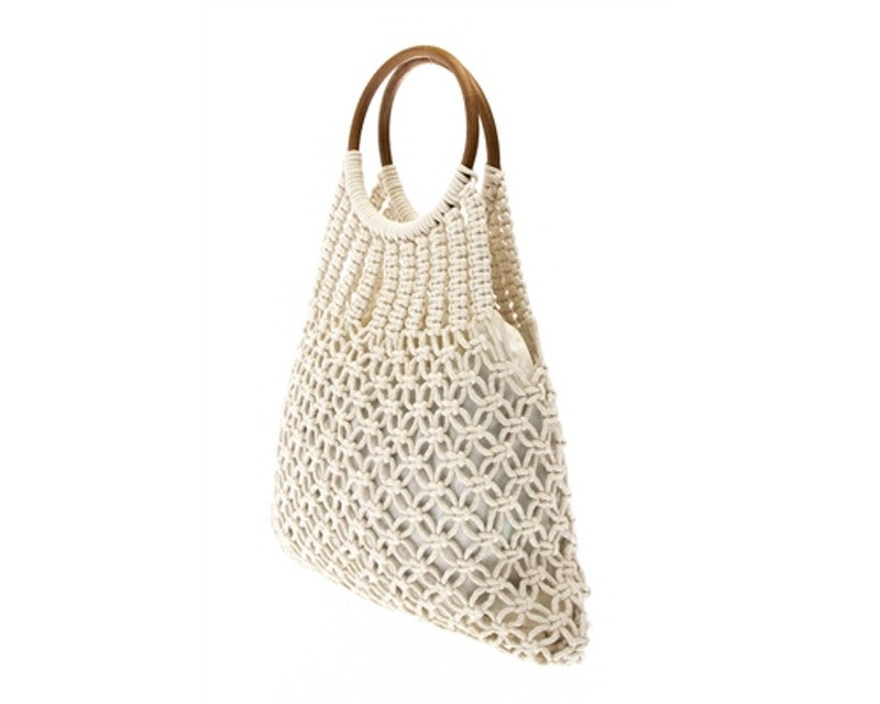 A881-COTTON MACRAME BAG W/ WOOD HANDLES